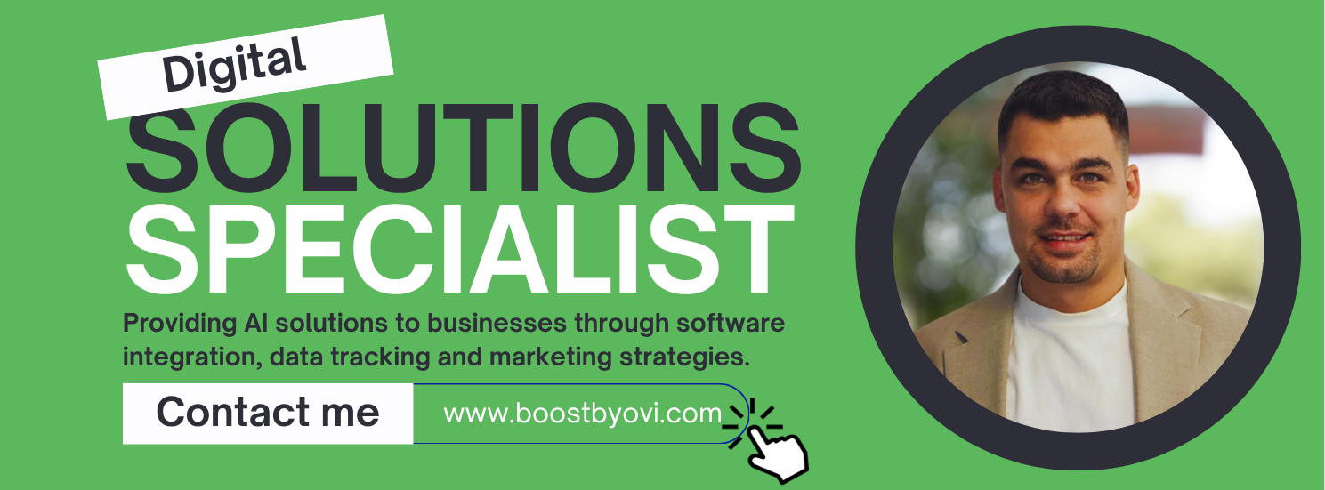 Digital Solutions Specialist focused on delivering AI driven business growth through software integration, data tracking and marketing strategy.